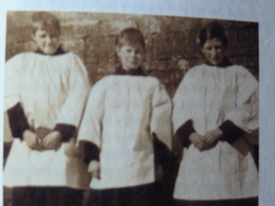 Albert (far right) and fellow choirboys Ernie Clark (far left) and Jack Shepherd, from St Mary’s church. The boys were photographed by a local farmer’s wife after she had just laundered their surplices!
