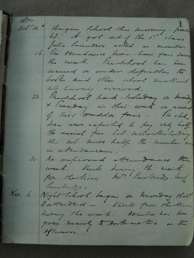 School closed on 19th and 20th October on account of East Haddon Fair. For the remainder of the week the children were only expected to pay half the usual fees.