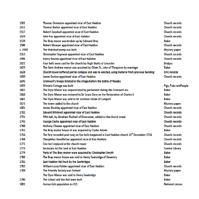 East Haddon Village Almanac 1502-1801