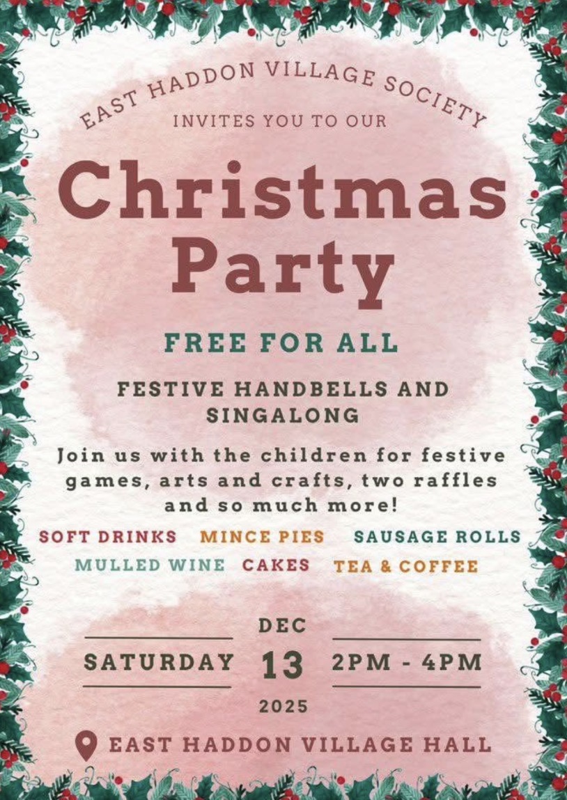 https://www.easthaddonparishcouncil.gov.uk/wp-content/uploads/2025/12/Christmas-Party-2025.jpg1149814Clerkhttps://www.easthaddonparishcouncil.gov.uk/wp-content/uploads/2022/12/east-haddon-parish-council-logo.pngClerk2025-12-11 11:26:182025-12-11 11:36:37Christmas Party Sat 13th Dec 2pm-4pm