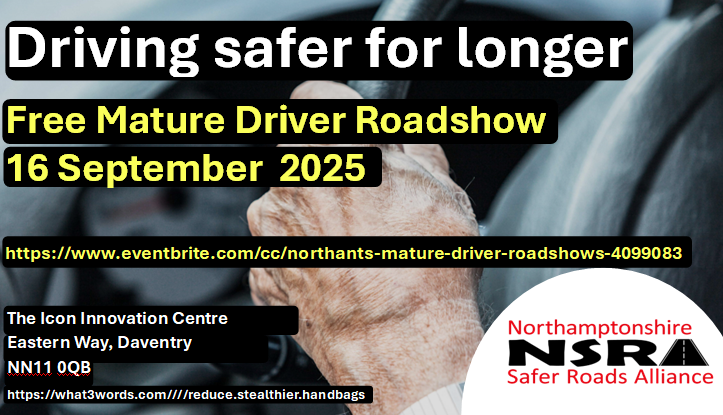 Book your Free tickets via Eventbrite https://www.eventbrite.com/cc/northants-mature-driver-roadshows-4099083